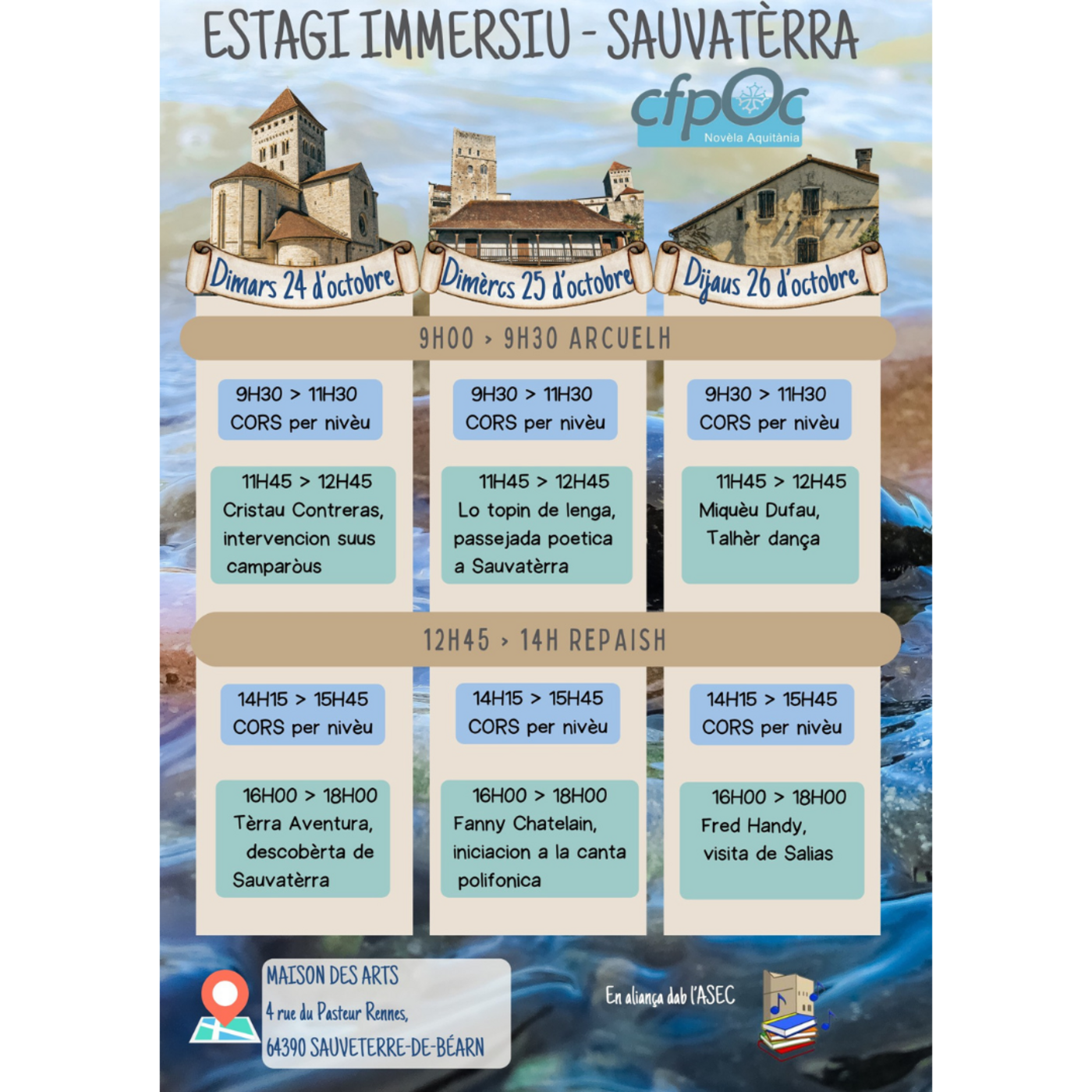 L'encargada del desvolopament de la formacion del CFPÒC Navèra-Aquitània nos presenta l'estagi immersiu d'occitan que se debana del 24 al 26 d'octobre a Sauvatèrra-de-Bearn (64).
