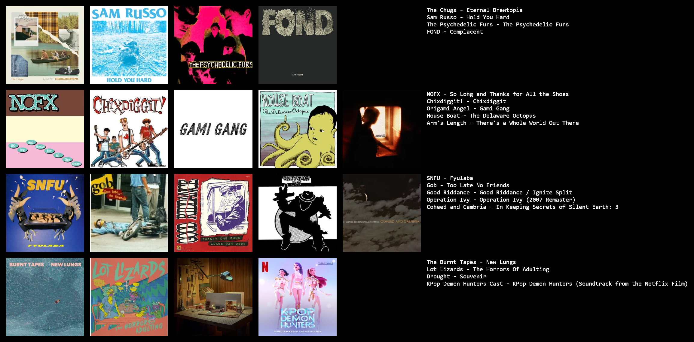 Bands & Artists Mentioned: NOFX, SNFU, Operation Ivy, Chixdiggit, Gob, Origami Angel, Good Riddance, Arms Length, Coheed and Cambria, Houseboat, Burnt Tapes, Lot Lizards, Drought, The Chugs, Sam Russo, Fond