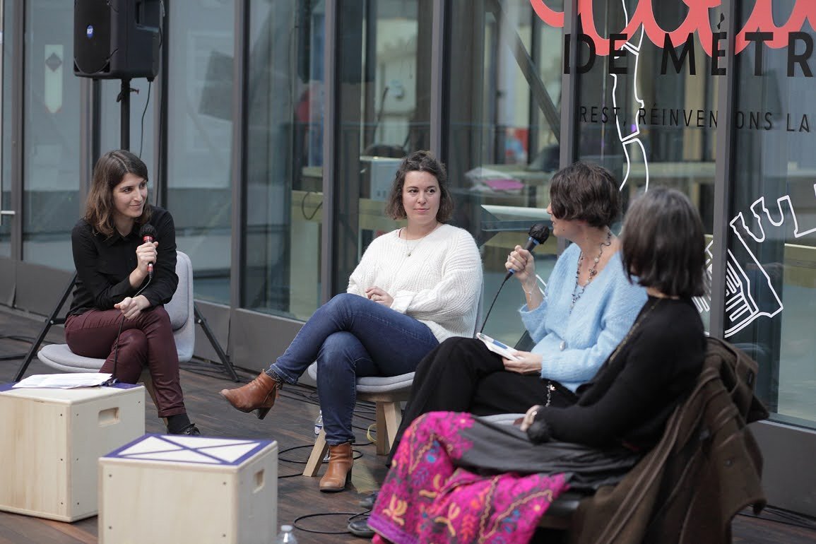 Rencontre avec Élise Andrieu, documentariste pour France Culture, Emmanuelle Soler, animatrice et productrice de Minute Papillon pour Radio Agora de Nanterre et Brune Bottero, réalisatrice de la saison 2 du podcast Entre pour Louie Media.