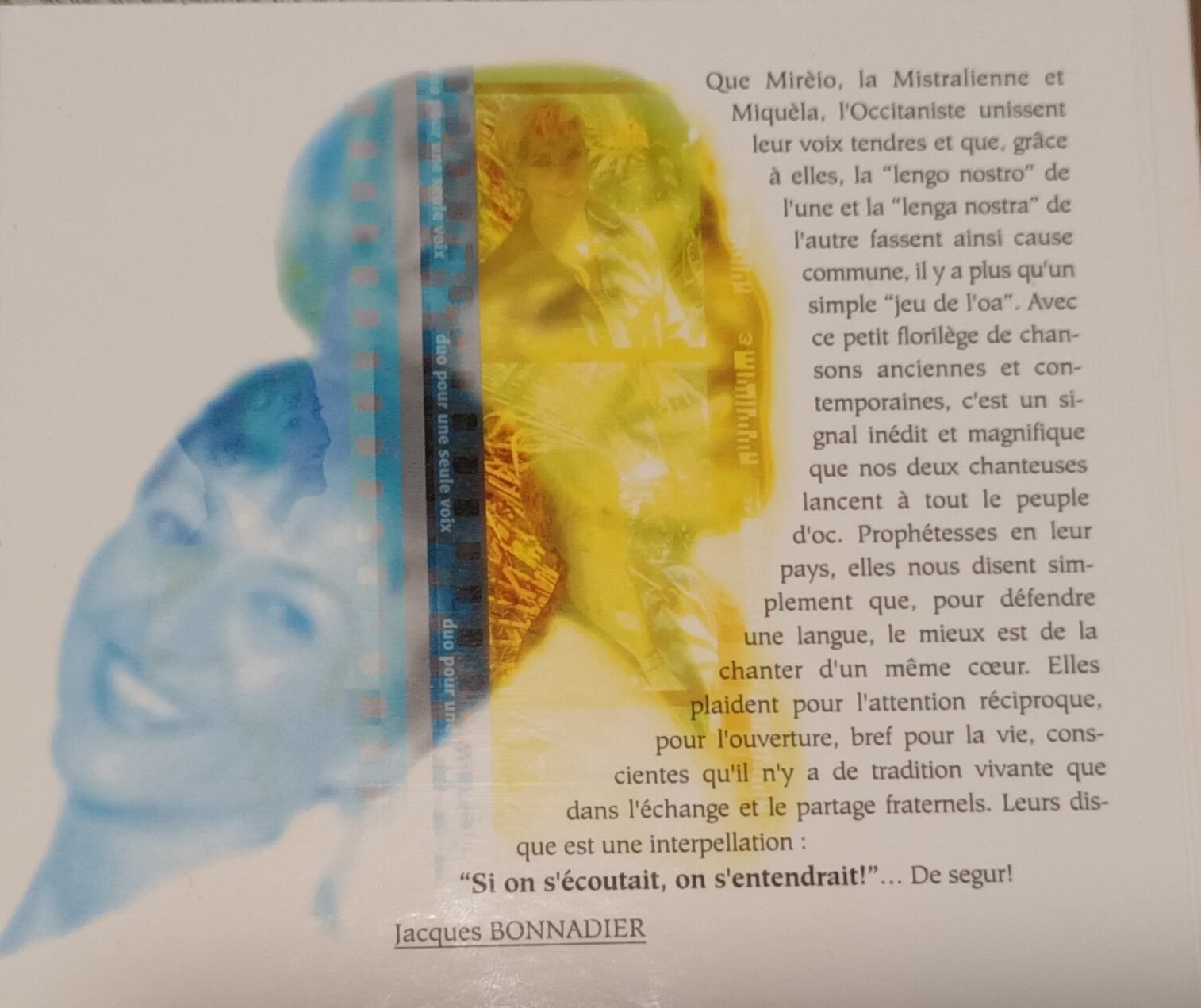 Lo CD si soana O/A Duo pour une seule Voix (2000). 9 cançons nòvi e tradicionali.